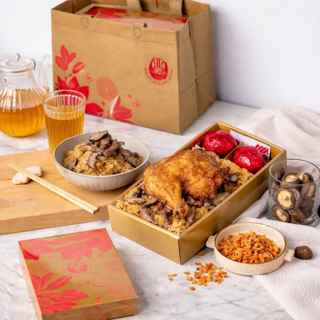 ※ 油飯禮盒請勿置於太陽直曬處或無空調運轉之車箱內 ※ 若要冷藏〈凍〉保存,請將禮盒內之雞腿、蛋一起放入冰箱